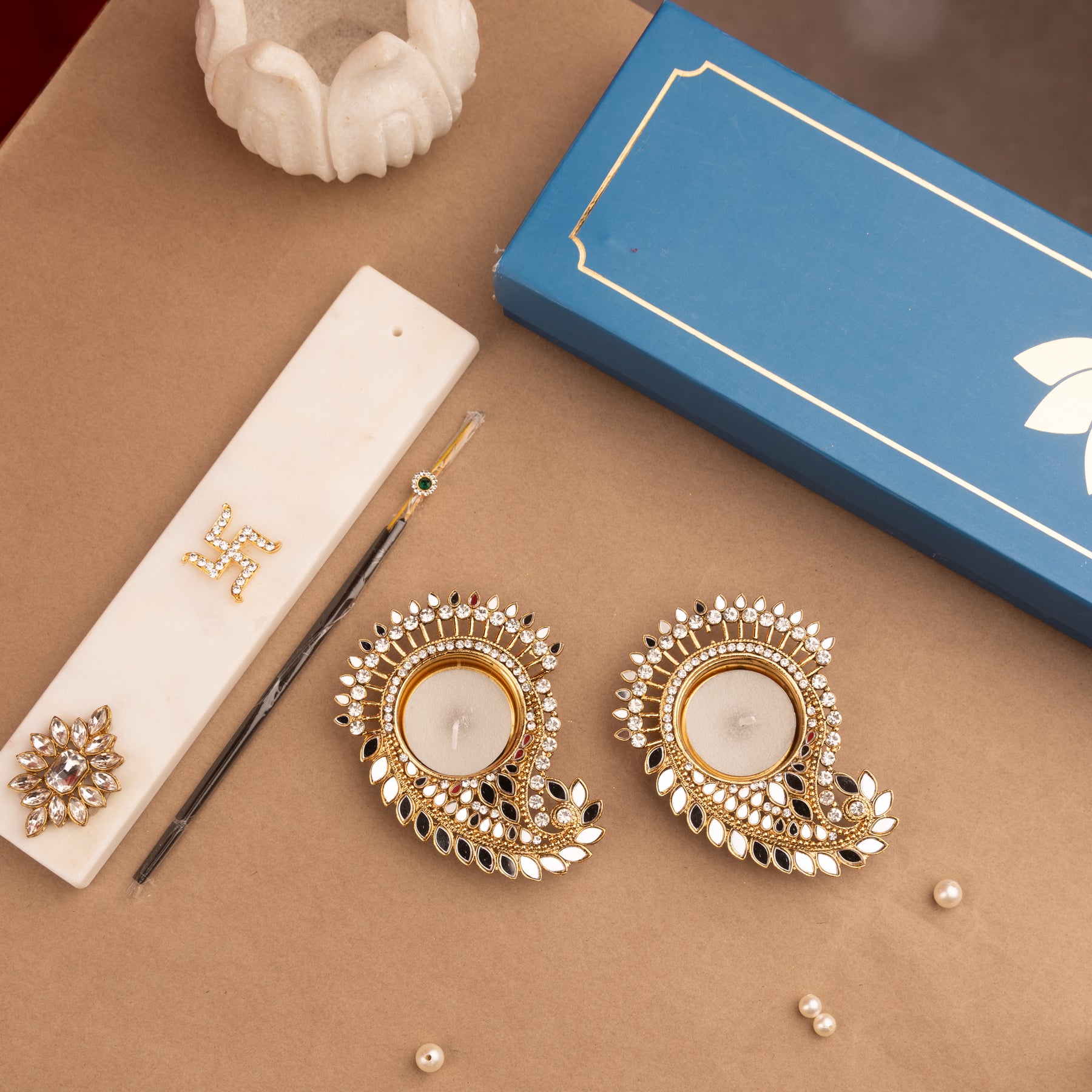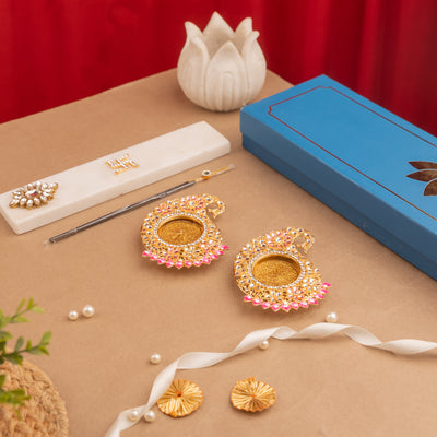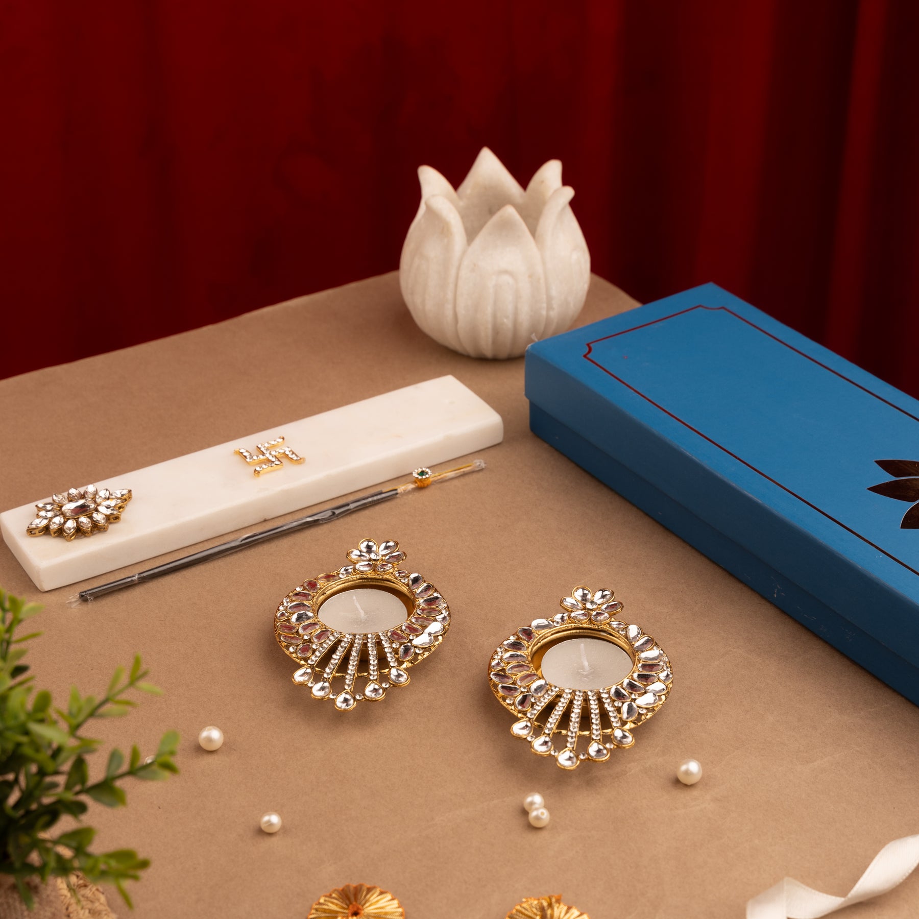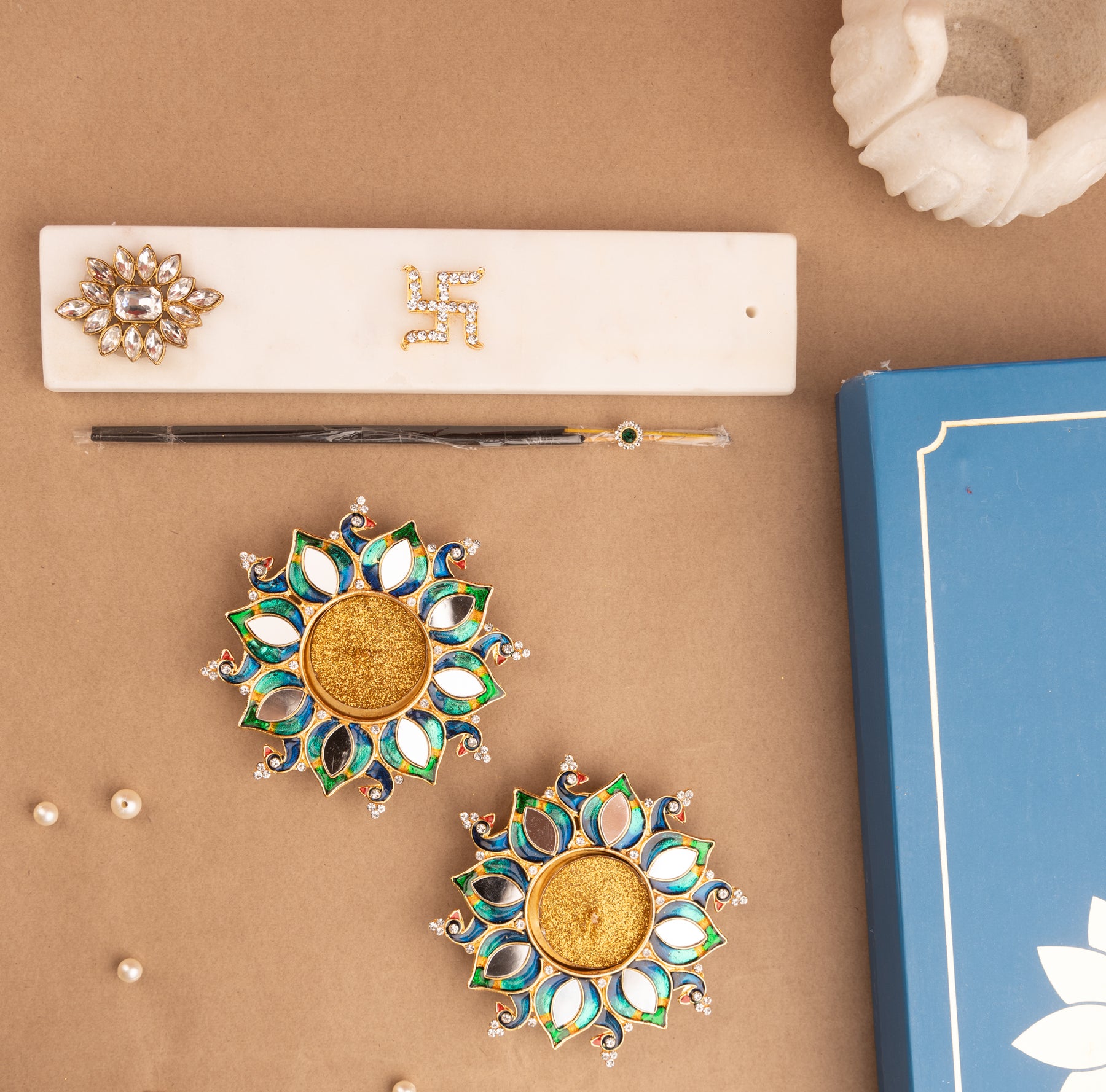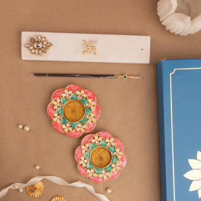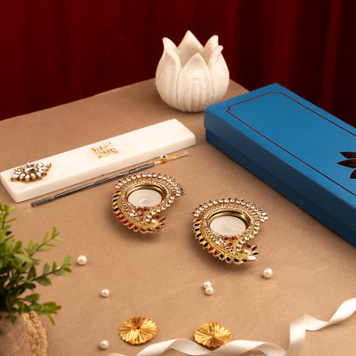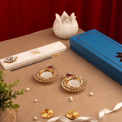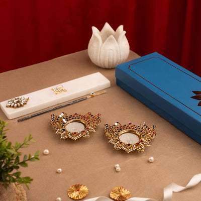-A marble exclusive Diya on a marble chowki is indeed a highly classy piece, offering a touch of luxury to any setting -It makes for an exquisite gifting option, especially for weddings and festive occasions -The combination of marble adds sophistication and elegance, making it a memorable giveaway choice -Comes in a royal blue exclusive packing box -Moq 10 and above