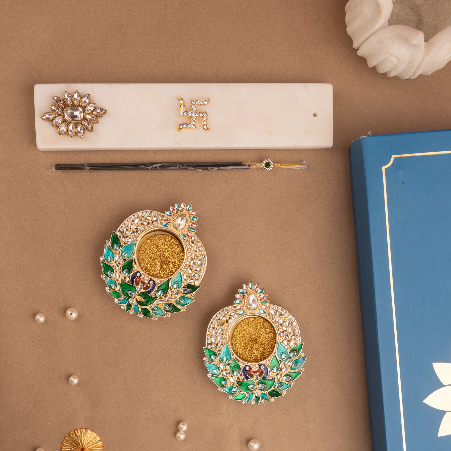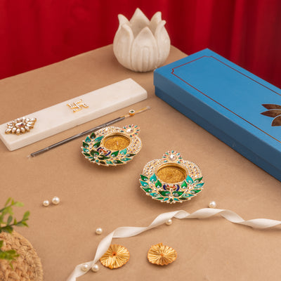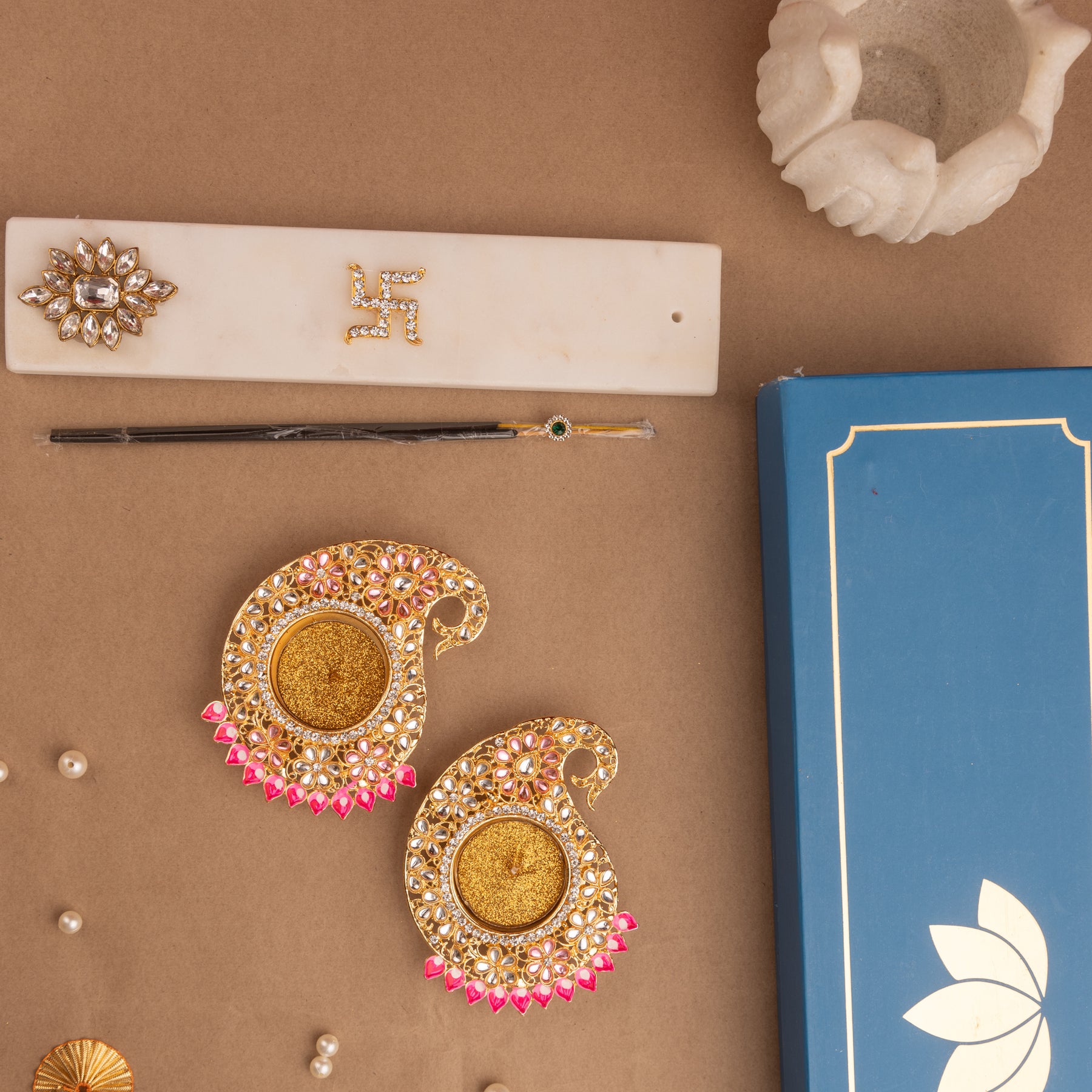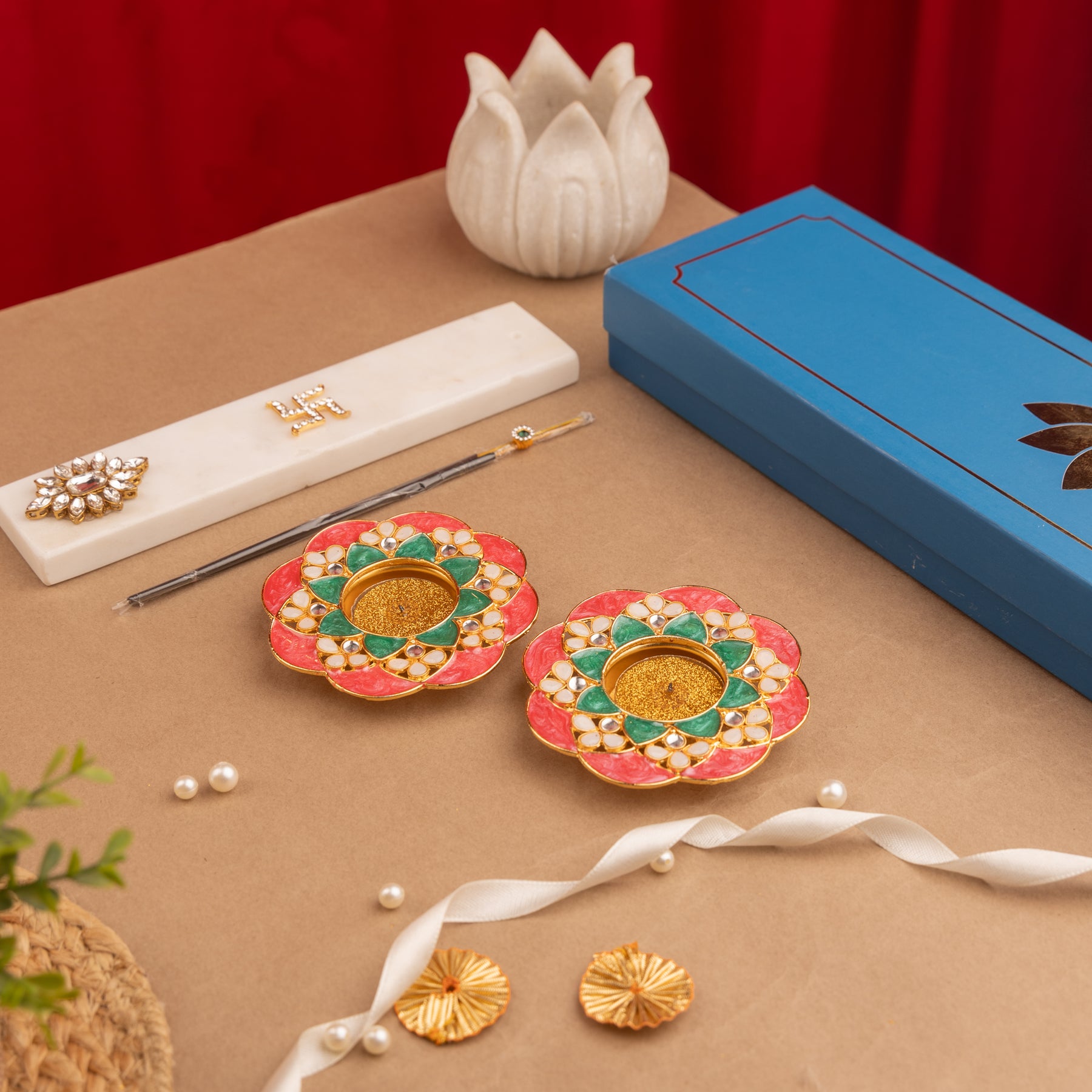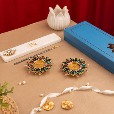 -A marble exclusive Diya on a marble chowki is indeed a highly classy piece, offering a touch of luxury to any setting -It makes for an exquisite gifting option, especially for weddings and festive occasions -The combination of marble adds sophistication and elegance, making it a memorable giveaway choice -Comes in a royal blue exclusive packing box -Moq 10 and above