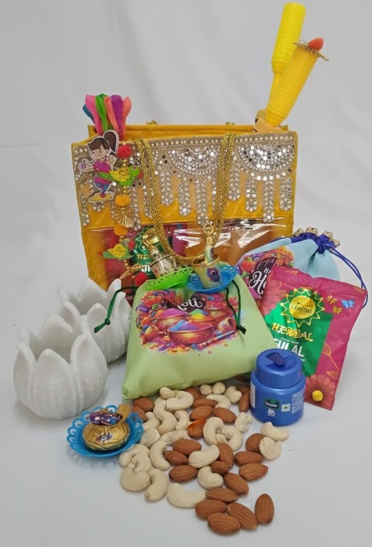 Each basket is carefully assembled with festive essentials and premium gifting elements, making it an ideal choice for Holi celebrations, corporate gifting, and return gifts. Vibrant, joyful, and meaningful—just like Holi itself.