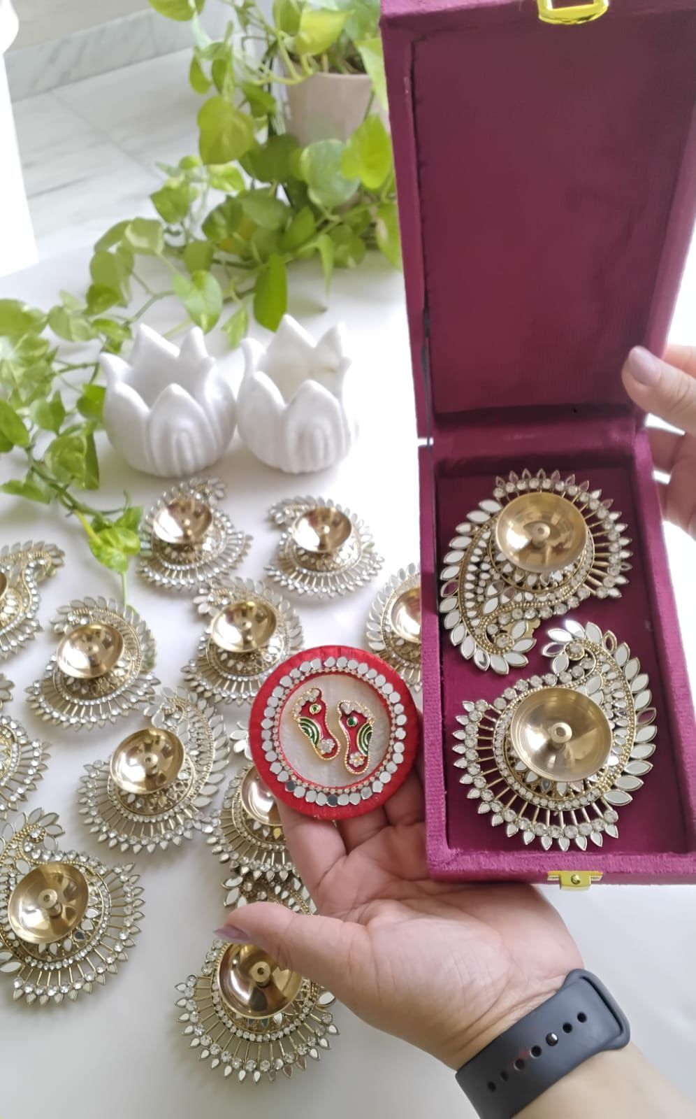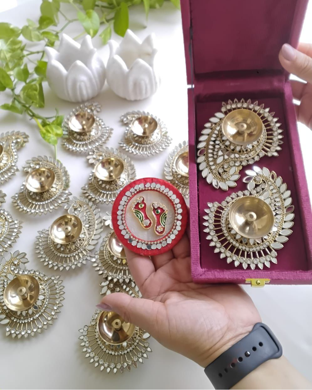 Marble Laxmi Charan with Metal Diya