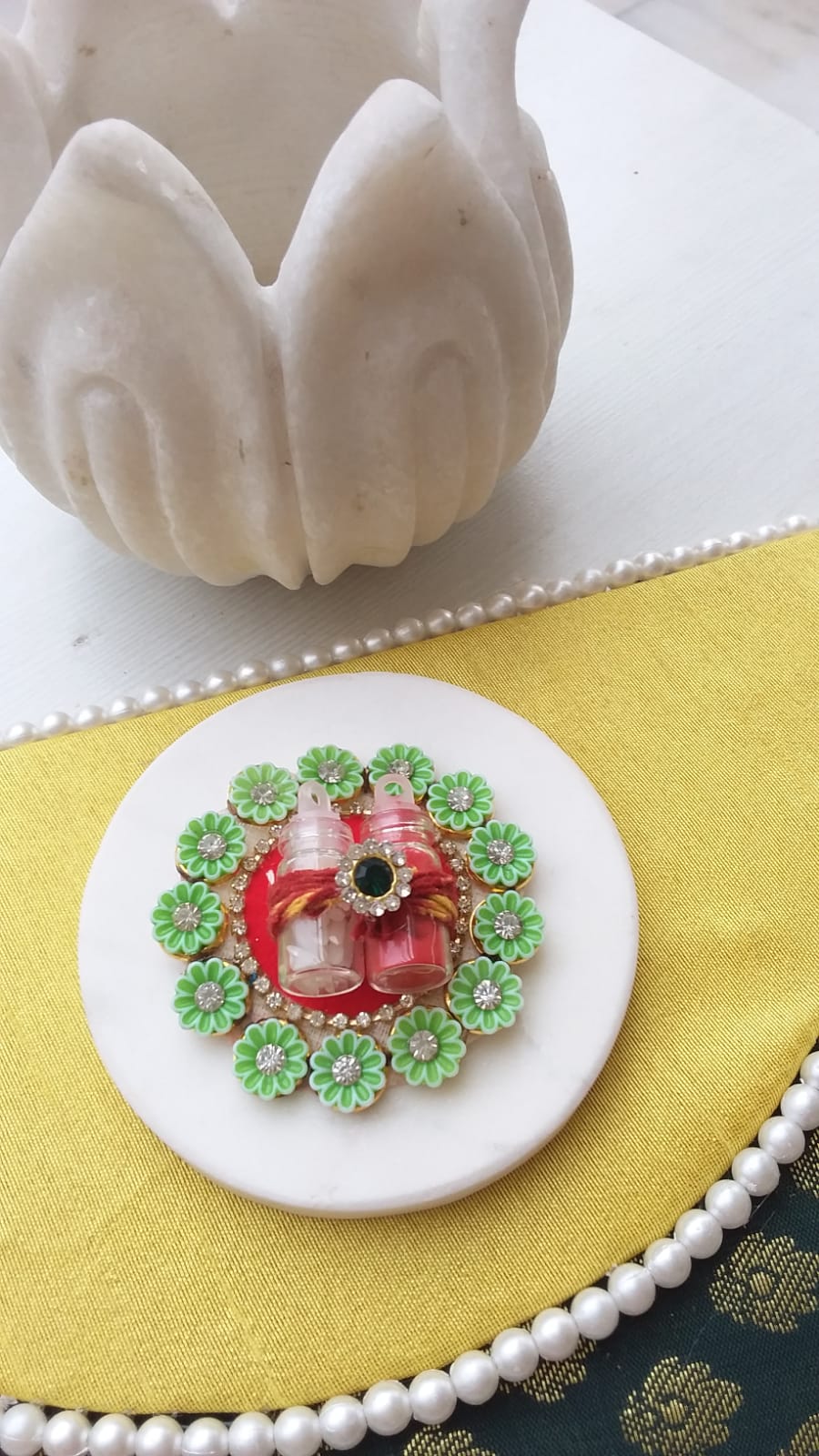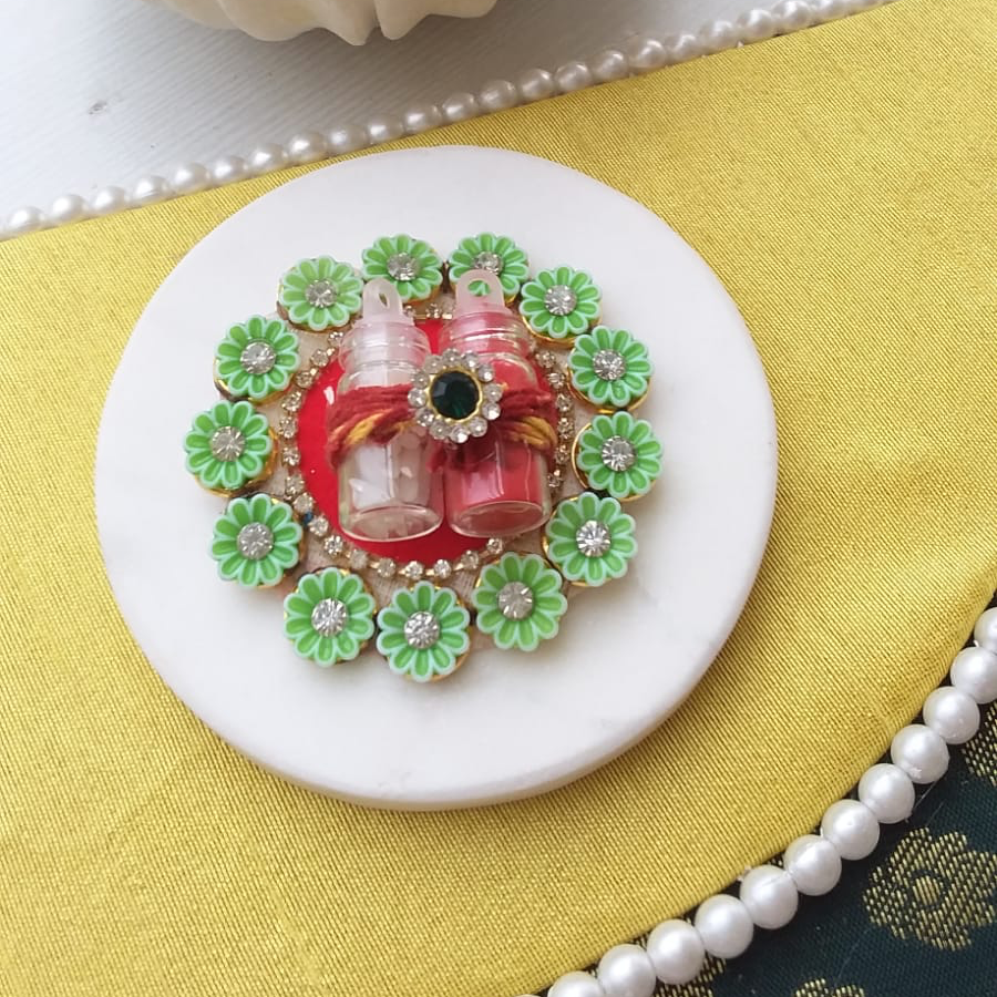 Roli Chawal Tikka Platter on Marble as a Base